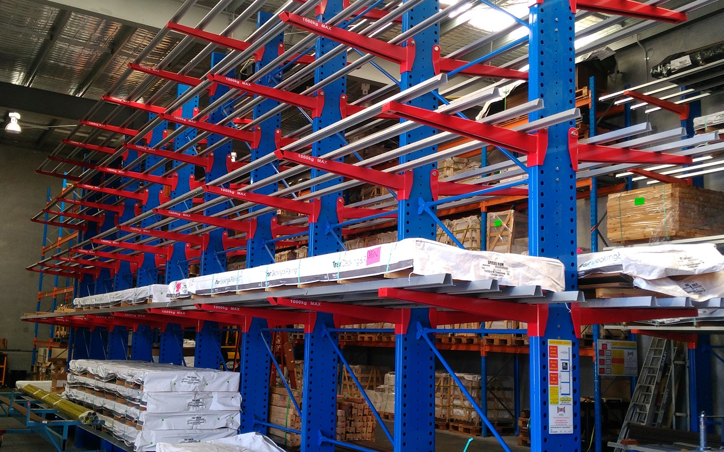 Cantilever racking is mainly used to store long or oversized products such as PVC, piping, timber, board or carpet. It is very strong, safe and cost effective and maximises floor space in a warehouse. It is a popular style of racking and utilised in many Brisbane and Queensland warehouses.